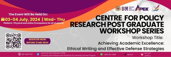 For your information, the Center for Policy Research will be doing a workshop Series on July 3–4, 2024, as scheduled on the poster. Please register at the QR code ( https://shorturl.at/bowRY) before May 31, 2024.